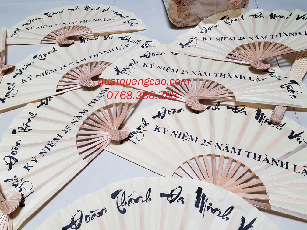 Xưởng quatquangcao.com chuyên sản xuất quạt giấy, quạt vải lụa, quạt nan tre, quạt thủ công các loại ... số lượng lớn sử dụng làm quà tặng đối tác, khách hàng, bạn bè... trong những sự kiện trọng đại của Nhà nước/ Doanh nghiệp/ tổ chức/ cá nhân: