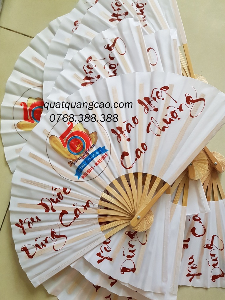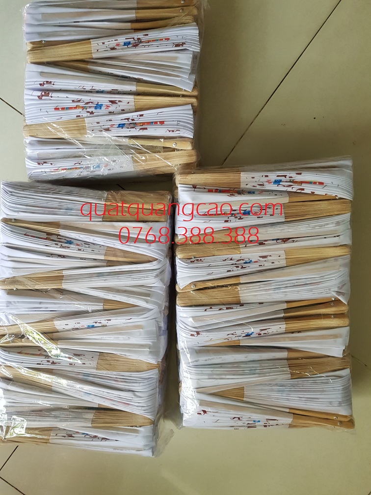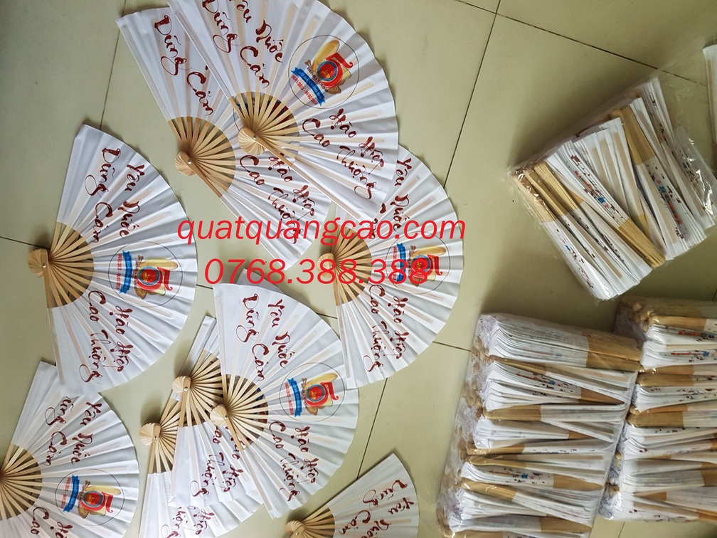 Xưởng quạt chúng tôi chuyên sản xuất quạt thủ công nan tre vải lụa, giấy... các loại số lượng lớn dùng để quảng bá, giới thiệu sản phẩm, dịch vụ đến với đối tác, khách hàng. Tiến độ giao hàng nhanh, sản phẩm chất lượng tốt, chi phí hợp lý vô cùng mà hiệu quả cao, không như phát tờ rơi quảng cáo. Mỗi chiếc quạt là một món quà ý nghĩa, thiết thực với độ bền cao sẽ làm cho người được tặng sẽ nhớ mãi.