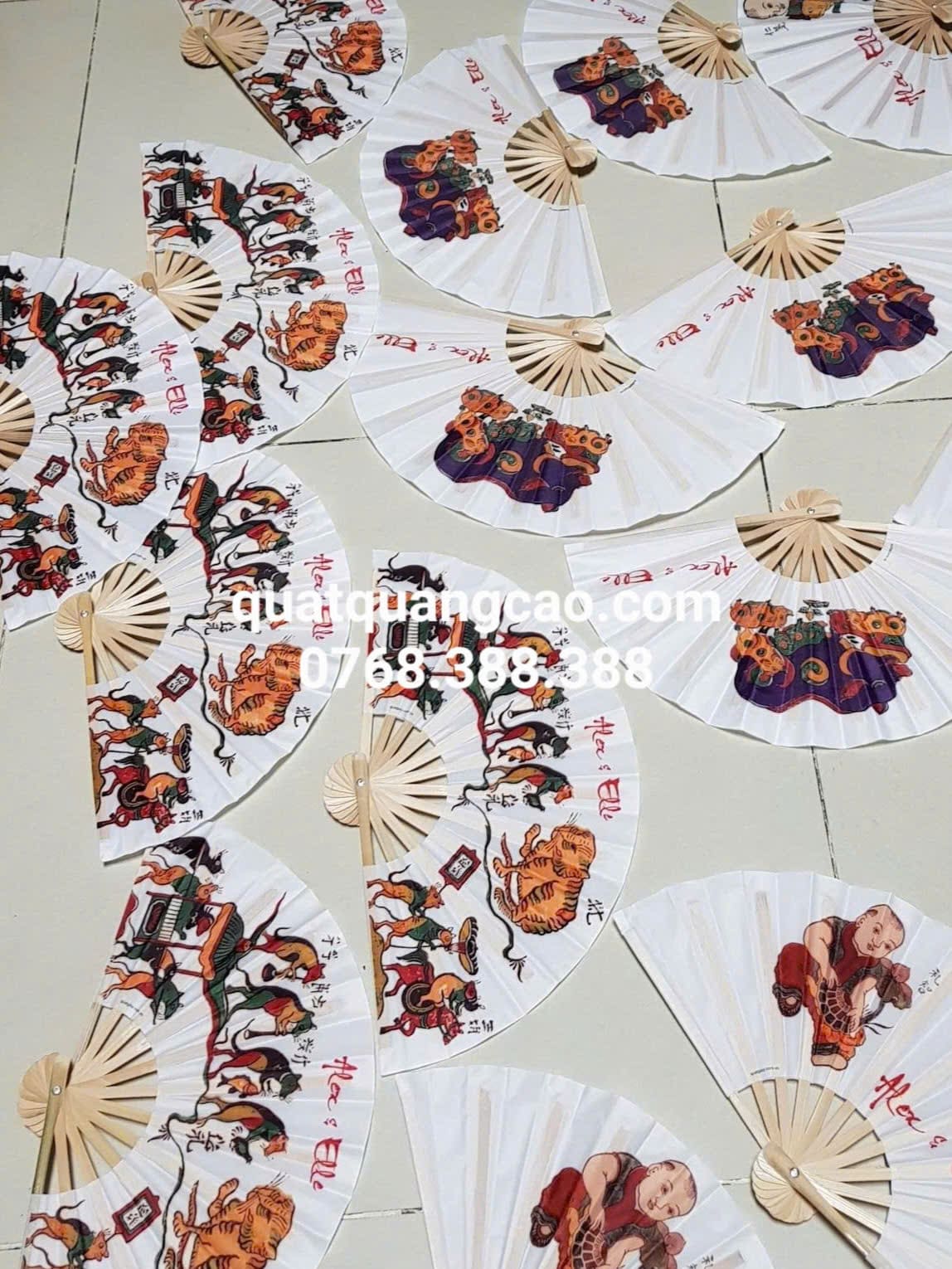 - Quạt tặng đám cưới hay lễ kỷ niệm thường được in tên, ngày cưới, hoặc lời cảm ơn từ gia chủ.